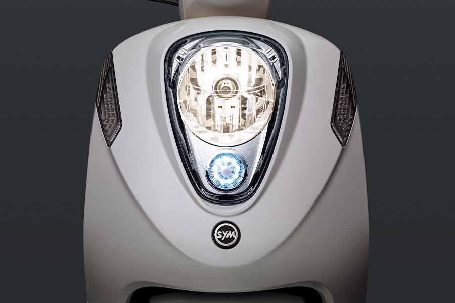 Η ισχυρή δέσμη της μεσαίας σκάλας, έντασης 22.500cd, σε συνδυασμό με τα εννέα LED φώτα θέσης, ενισχύει την αναγνωρισιμότητα του MIO 50 στο δρόμο και εξασφαλίζει υψηλό επίπεδο ασφάλειας, ακόμη και σε συνθήκες περιορισμένου φωτισμού.