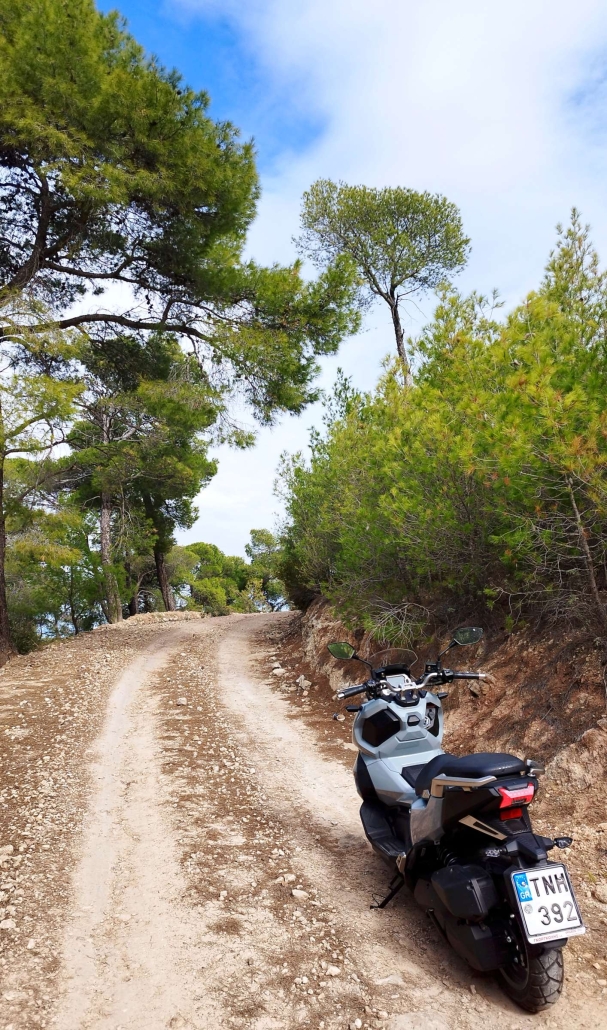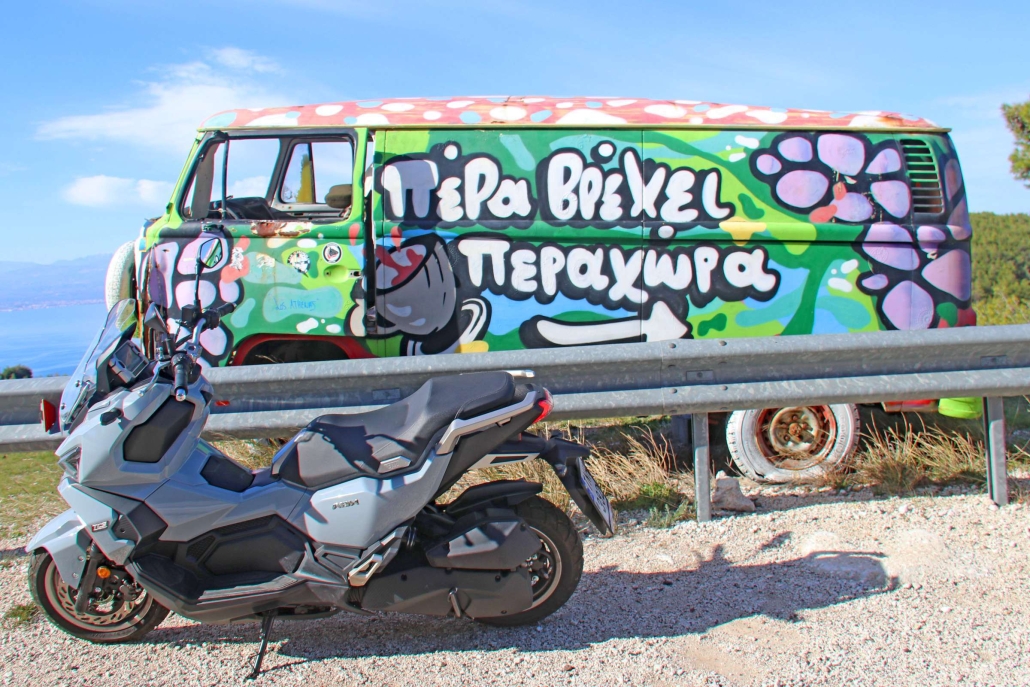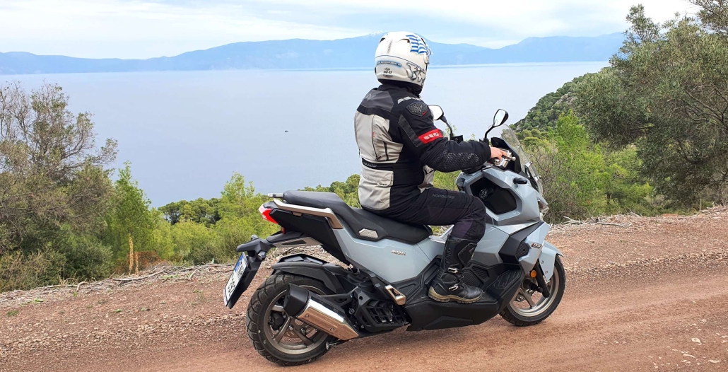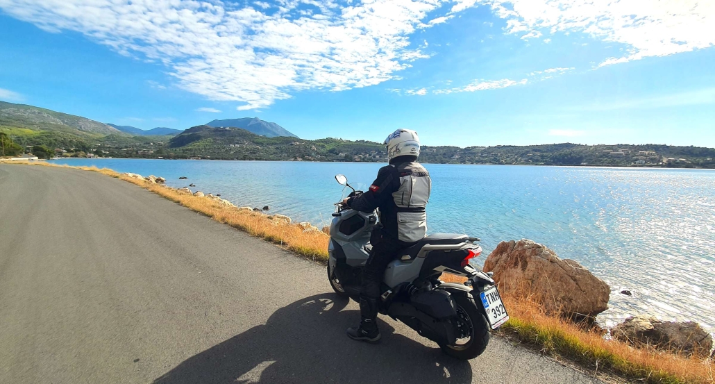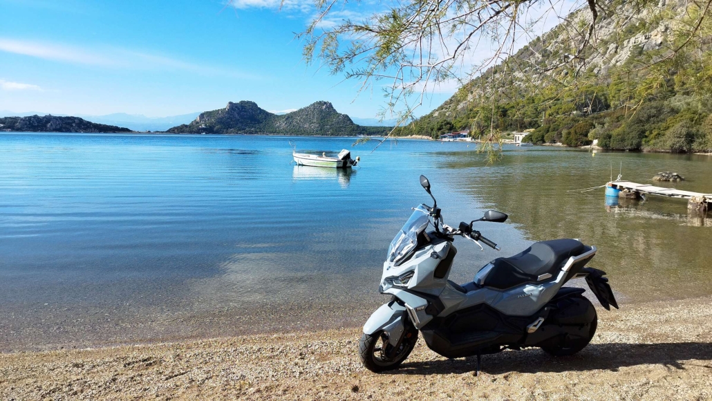 Συνιστώντας έναν εκρηκτικό συνδυασμό από ψιλή άμμο και βράχια, πεύκα, τιρκουάζ νερά, βοτσαλωτές παραλίες και κρυφές απάνεμες γωνιές αφημένες στην αγκαλιά της θάλασσας, οι φυσικές καλλονές των παραθαλάσσιων τοπίων του Κορινθιακού κόλπου αποπλάνησαν –όπως ήταν αναμενόμενο– σαν μαγευτικές σειρήνες τις αισθήσεις μου. Με το adventure toy SYM ADX 125 να μεταμορφώνεται (όπου χρειαζόταν) σ’ ένα μικρό off-road animal και την αύρα του Κορινθιακού κόλπου να χαϊδεύει διαρκώς το πρόσωπό μου, βίωσα ένα αναζωογονητικό ταξίδι γαλαζοπράσινης ομορφιάς και “έντυσα” με εικόνες ζωηρές, πραγματικές, έναν προορισμό που τον είχα σχηματίσει μόνο στη φαντασία μου.