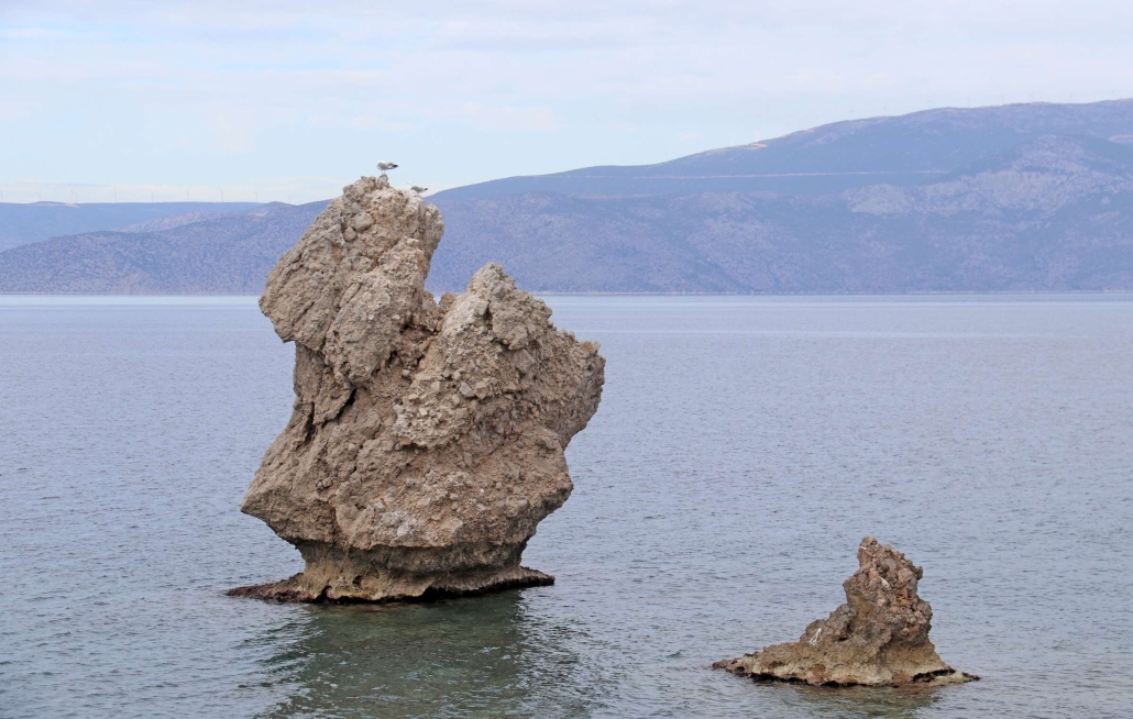 Μόλις 2 χλμ. μακριά από τις όχθες της λίμνης, στο δυτικό άκρο της χερσονήσου εκεί όπου τελείωνε ο ασφαλτόδρομος, βρισκόταν ο αρχαιολογικός χώρος του Ηραίου. Θεμέλια κατοικιών, υπόγειες υδατοδεξαμενές, οχυρωματικά έργα και το ιερό της Ήρας Ακραίας, είναι τα μνημειακά ευρήματα που ήρθαν στο φως από την σκαπάνη της Αγγλικής Αρχαιολογικής Σχολής (1930–1933). Αίσθηση, ωστόσο, προκαλεί το υποβλητικό παραθαλάσσιο περιβάλλον στο οποίο βρίσκονταν τα λείψανα της αρχαίας πόλης. Επίσης, από τον χώρο στάθμευσης των οχημάτων, μετά λίγα λεπτά πεζοπορίας προσέγγισα τον φάρο του Ηραίου, απ’ όπου η θέα της ευρύτερης θαλάσσιας περιοχής, αλλά και των παρακείμενων δαντελωτών βραχωδών ακτών ήταν εντυπωσιακή.