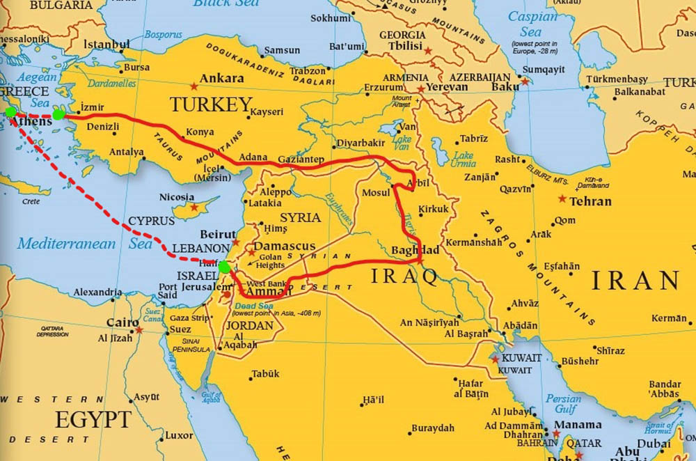Ισραήλ, Ιορδανία, Ιράκ και Τουρκία ήταν οι τέσσερεις χώρες που σχημάτισαν τη διαδρομή των 4.000 χιλιομέτρων του Έλληνα αναβάτη. Το υδάτινο αποτύπωμα του Τίγρη και του Ευφράτη, τα μνημεία των πανάρχαιων πολιτισμών της Μεσοποταμίας, η αφιλόξενη έρημος της Ιορδανίας, τα αραβικά παραμύθια της Βαγδάτης, η μυθική Βαβυλώνα και η μισοκατεστραμένη –από τους τζιχαντιστές του ISIS– Μοσούλη, αποτέλεσαν τα κυριότερα στοιχεία αναζήτησης και καταγραφής του Κωνσταντίνου Μητσάκη, στη διάρκεια των 20 ημερών του ταξιδιού “SYM MIDDLE EAST”.