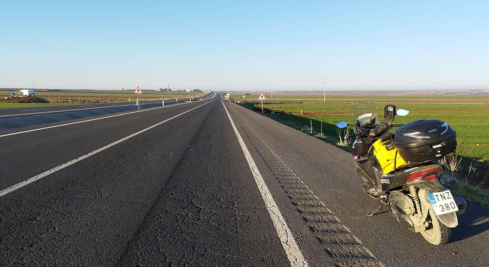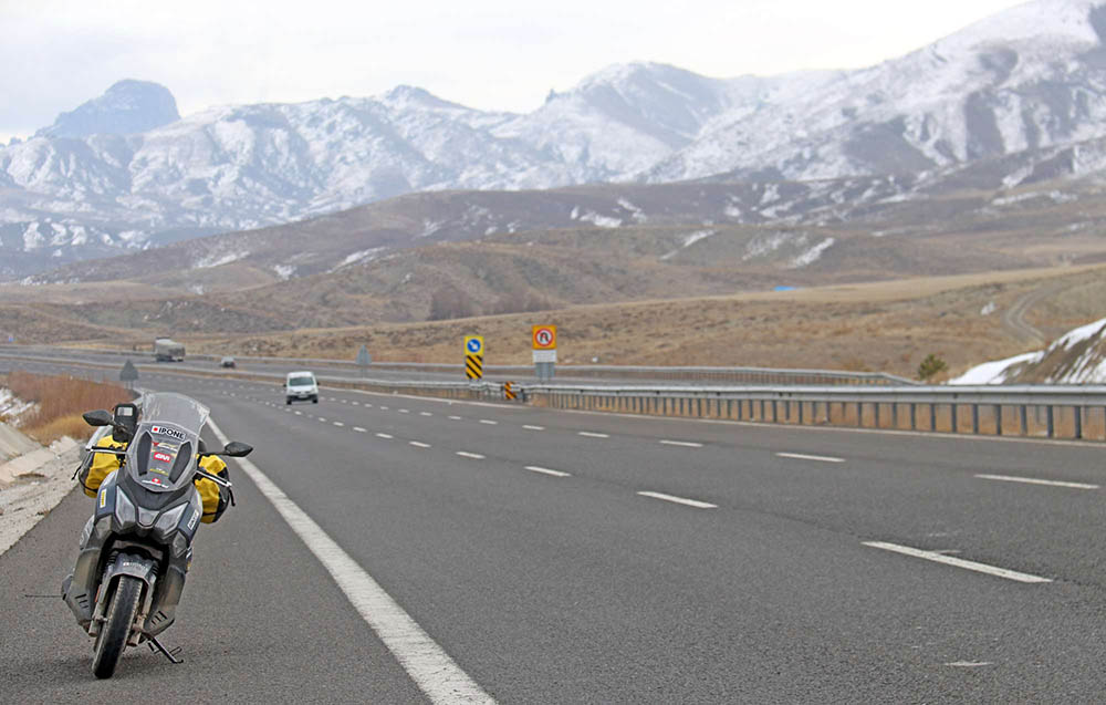 Στα τουρκικά σύνορα γράφτηκε ο επίλογος της ιρακινής αποστολής του “SYM MIDDLE EAST”. Με συνοδοιπόρο το τσουχτερό κρύο του καταχείμωνου, ο Μητσάκης κλήθηκε να διανύσει 1.800 χιλιόμετρα στην Τουρκία, οδηγώντας το SYM JOYRIDE 300 στη διαδρομή Cirze – Gaziantep – Konya – Afyon – Cesme. Οι παραδοσιακές πλίθινες κατοικίες του αρχαίου οικισμού Harran, η Gaziantep (μια από τις παλαιότερες πόλεις στον κόσμο, καθώς κατοικείται συνεχώς από το 3.650 π.Χ., η οποία δυστυχώς λίγες μέρες αργότερα χτυπήθηκε από τον καταστροφικό σεισμό…) και η οικία που γεννήθηκε ο νομπελίστας ποιητής Γεώργιος Σεφέρης στην Urla, ήταν οι κυριότερες στάσεις του “SYM MIDDLE EAST” στην τουρκική επικράτεια.